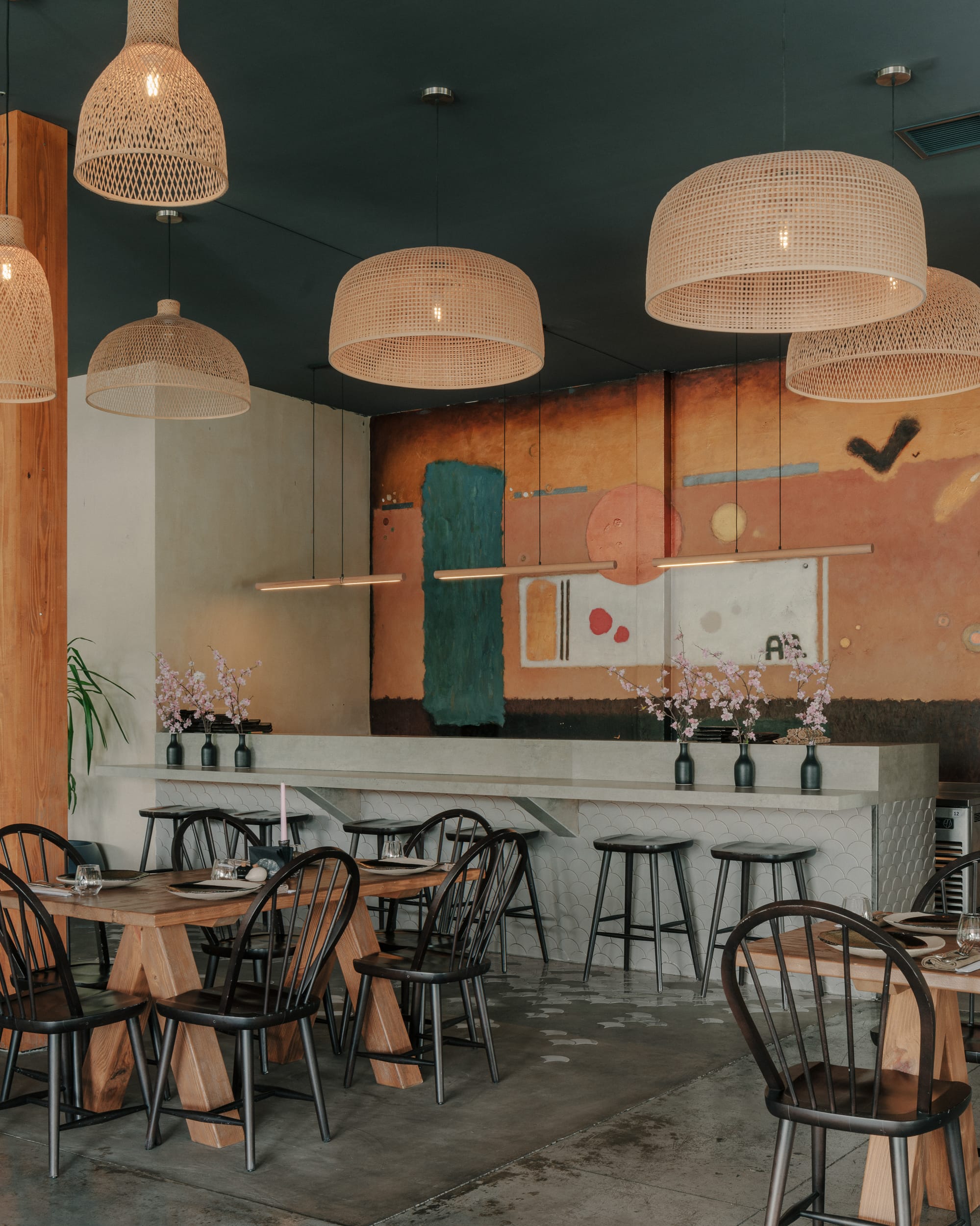 The name “Ike,” meaning “small lake” in Japanese, reflects the connection between Asian cuisine and a lake formed by mountain waters. The interior features site-specific artwork by Anton Balanchivadze.